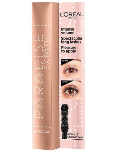 ریمل حجم دهنده پارادایس اکستاتیک لورآل جدیدترین ماسکارای لورال پاریس با حجم 6.4 میلی لیتر و محصول کشور فرانسه، یک ریمل فوق العاده برای حجم دهی و بلند کردن مژه ها است. این ریمل دارای براشی بسیار نرم، فرمول ابریشمی، یکدست و انعطاف پذیر با پرزهای متراکم است که استفاده از آن را آسان می کند. براش موج دار این ماسکارا بیشترین مواد را در خود نگه می دارد و با بیش از 200 فیبر تک تک مژه ها را تسخیر می کند تا حجمی فوق العاده به مژه ها بدهد. این پرز ها به راحتی تمامی تارهای مژه ها را پوشش داده و از چسبیدن مژه ها به یکدیگر جلوگیری می کنند. ریمل حجم دهنده لورآل مدل Paradise Extatic دارای رنگدانه های غنی و کاملا مشکی می باشد. ریمل لورآل اینتنس ولوم پارادایز اکستاتیک کاملا ضد حساسیت بوده و برای انواع چشم و مژه مناسب می باشد. این محصول حاوی روغن کرچک، روغن جوجوبا، روغن نخل، روغن زیتون و عصاره گل سنتورا بوده و از خرد و پوسته پوسته شدن ریمل روی مژه ها جلوگیری می کند و انتخابی تایید شده از سوی متخصصین آرایشی است.